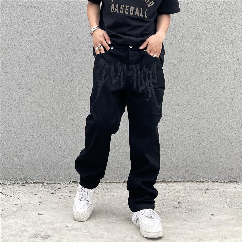 JYL Mens Jeans Spring New Trendy Loose Straight Harajuku Style Casual Denim Pants