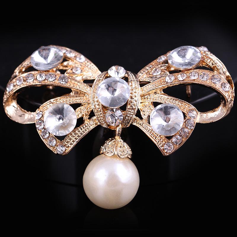 Handmade Bow Pearl Crystal Brooch Wedding Pin Female Buckle Exquisite Hypoallergenic Luxury Enamel Long-lasting Color Accessory