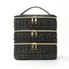 3 Layer Large Capacity Cosmetic Bag Quilted Multifunctional Portable Handbag for Women College Students Travel Dormitory