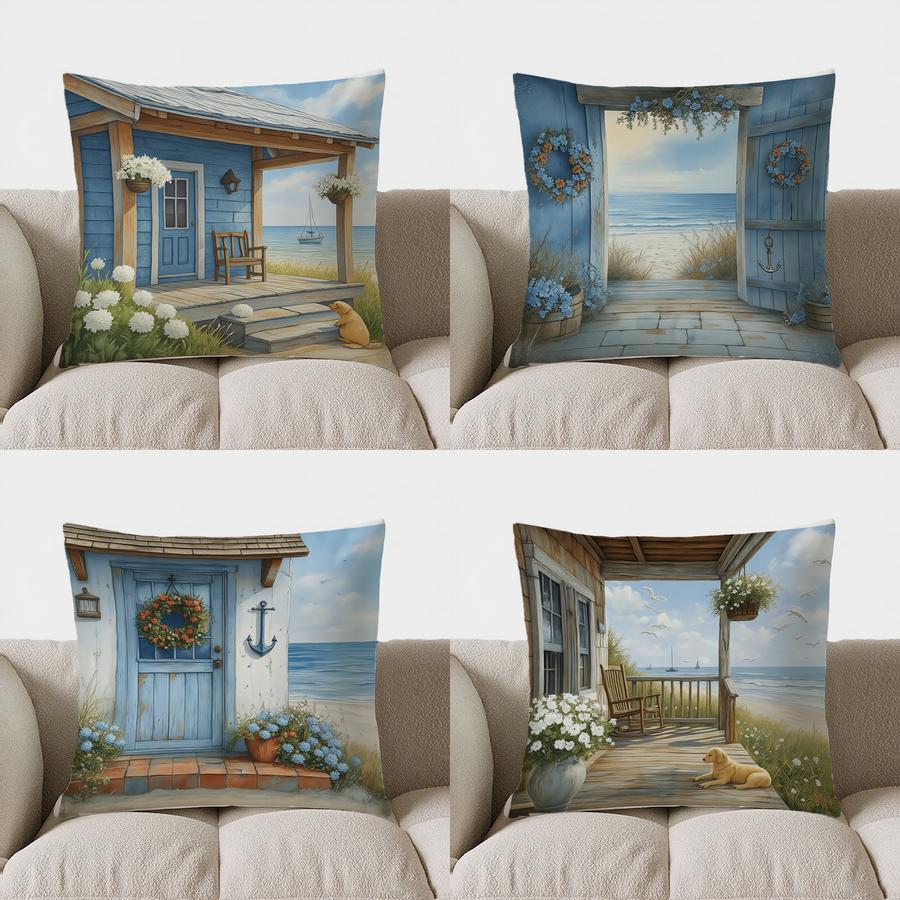 Home Decor Seaside Cabin With Otter And Sailboat Pillow Pattern Cushion Cover Suitable For Sofa Bedroom Car Pillow Cover