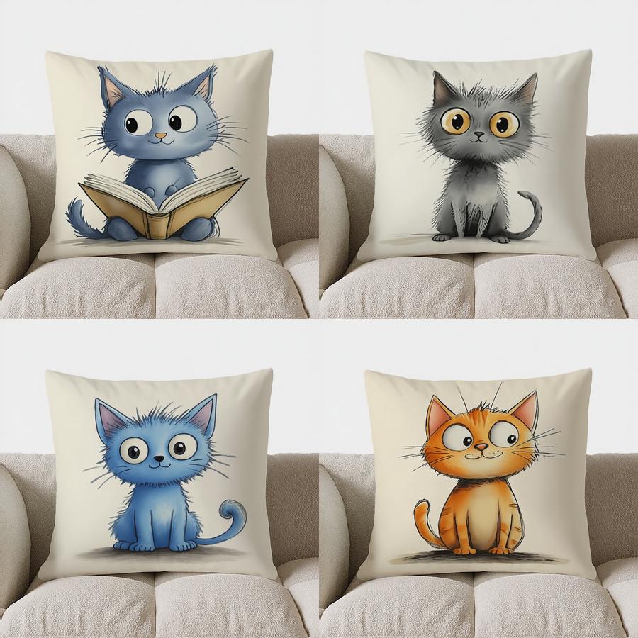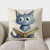 Home Decor Cute Blue Cat Reading Book Pillow Cover Pattern Cushion Cover Suitable For Sofa Bedroom Car Pillow Cover