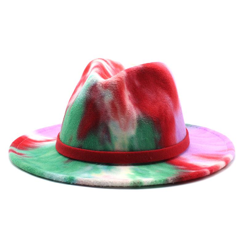 Ji Nan Ladies Tie-Dyed Rainbow Wool Top Hat, Flat-Brimmed Jazz Hat Felt Hat