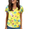 Women's V-Neck Easter Print Short-Sleeve Pocket Top With Side Slit