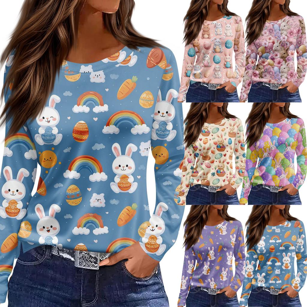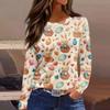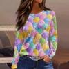 Damska modna, swobodna, rozcięta na dole, okrągły dekolt, długi rękaw, luźny, nadrukowany T-shirt