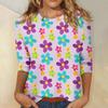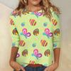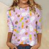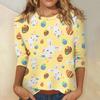 Damska koszula wielkanocna z rękawem 3/4, okrągły dekolt, luźny krój, codzienna koszula