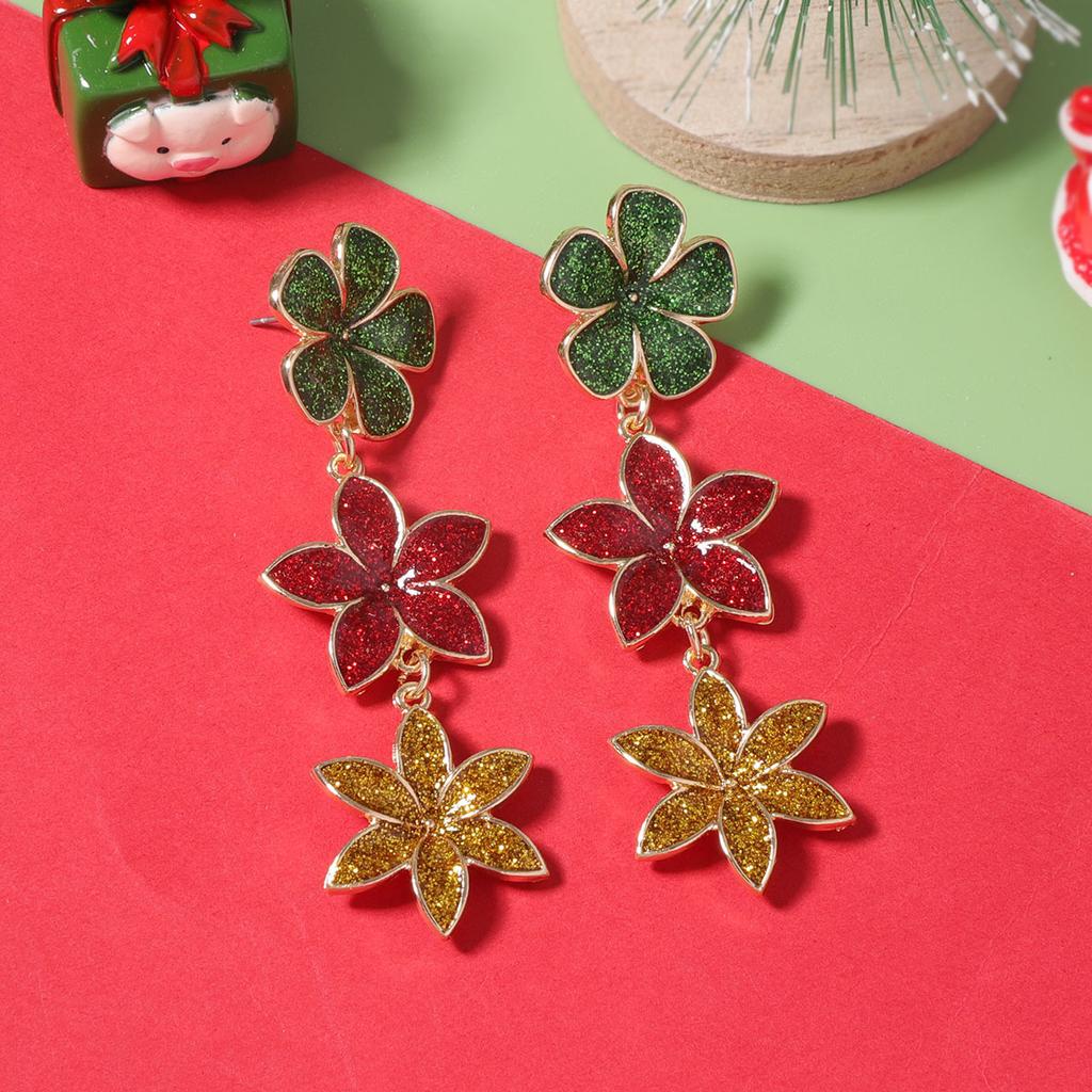 Christmas fashion festive alloy splicing flower pendant earrings, versatile niche daily models