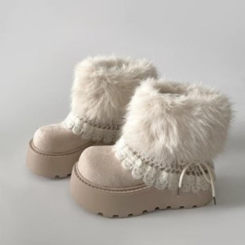 Buty na wysokim obcasie z grubą podeszwą dla efektu wyszczuplenia, Wyściełane i grube buty śniegowe