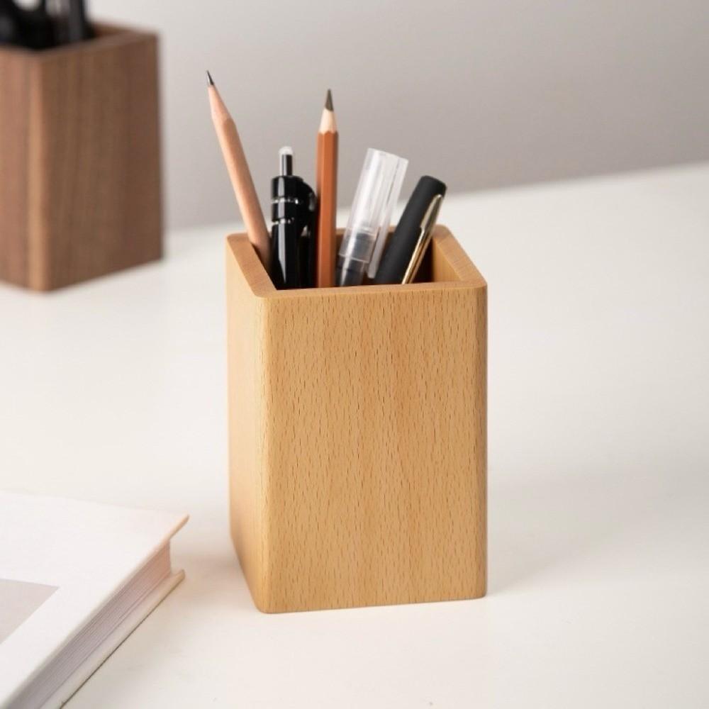 Simple Hickory Wood Pen Holder Desktop Storage Makeup Brush Organizer Office/School Supplies