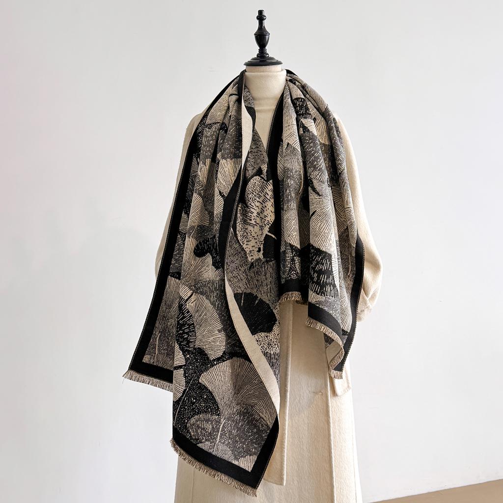 Luxury Brand Women's Cashmere Scarf - Winter Warm Tasseled Striped Printed Pashmina Shawl, Foulard & Poncho
