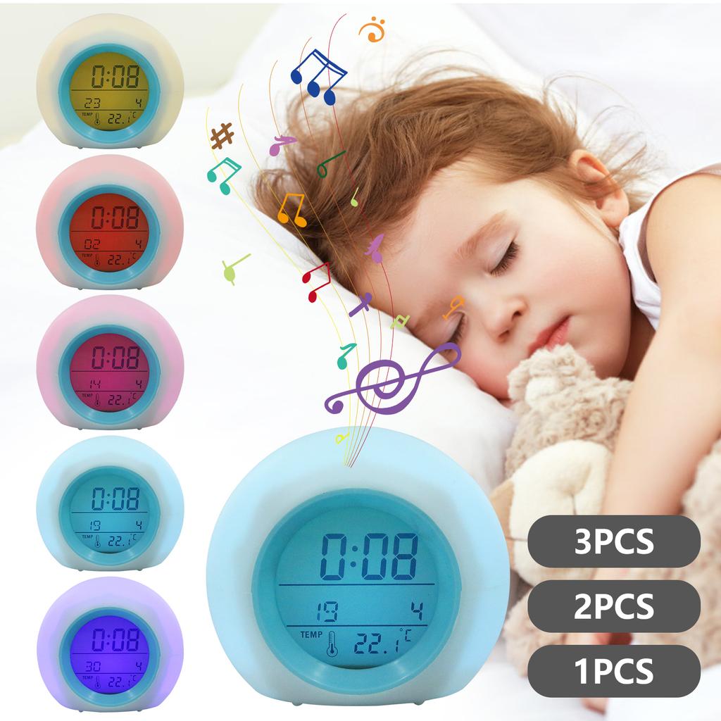 Kids Alarm Clock 7 Color Night Light Toddler Sleep Training Clock Cute Night Light for Children Bedroom Boy Girls Birthday Gift