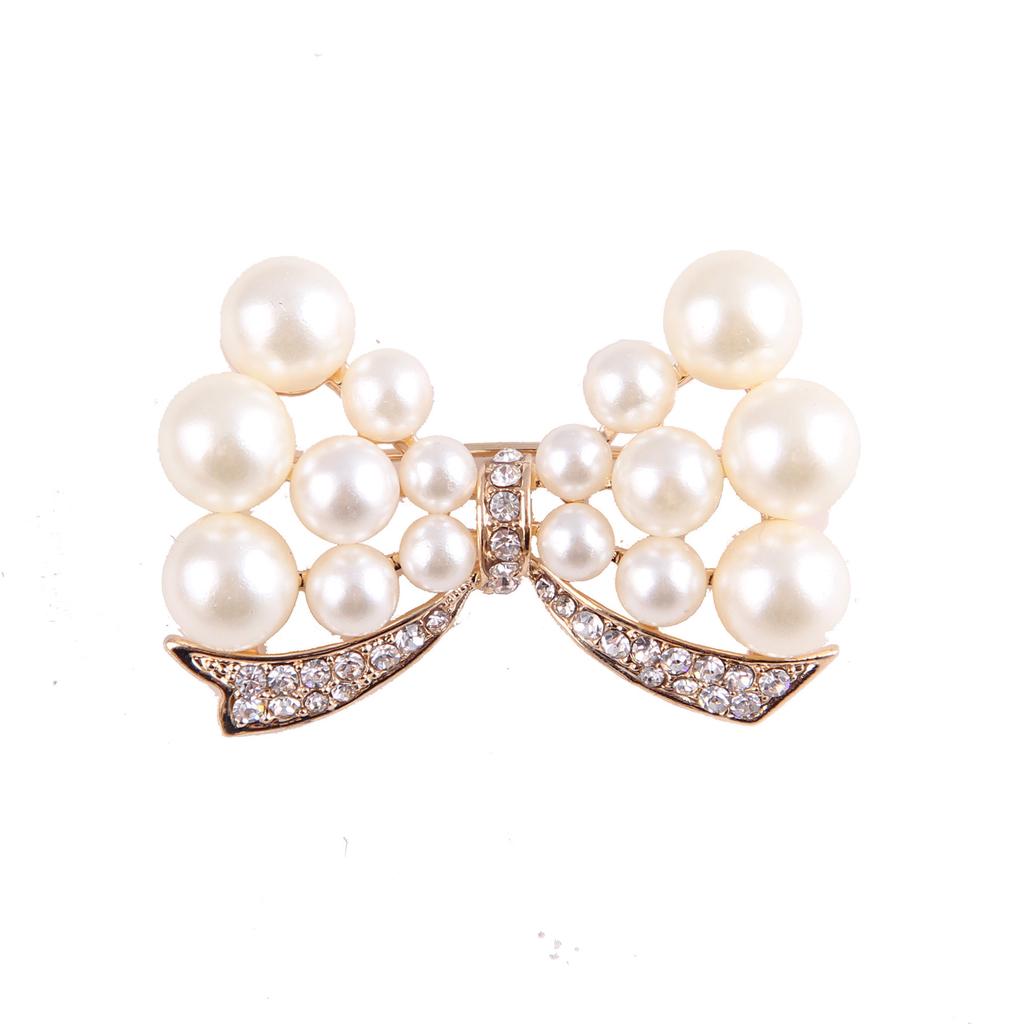 Cute Bow Pearl Brooch Corsage Flower Ornaments Female Wedding Exquisite Ethnic Style Hypoallergenic Affordable Luxury Enamel Brooch Long-Lasting Color