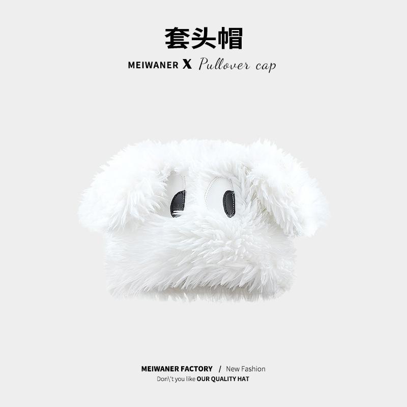 Cute Cartoon Big Eyes Puppy Hat Female Eyes Long Ears Thickened Pullover Hat Warm Plush Lei Feng Hat