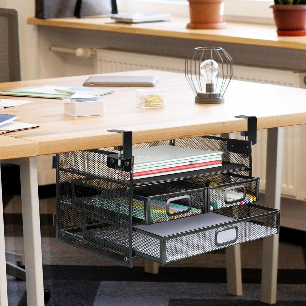 NiOffice No-Drilling Under-Desk Storage Drawer Rack with Dividers, Under-Table Storage Organizer for Home & Office