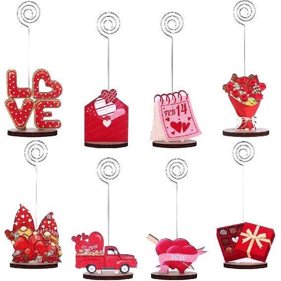 8 Lovely Designs: Our Valentine's table sign picture holders come in 8 styles, like calendar, gnome, heart, flower, ect, enhancing the holiday spirit, adding a sweet and romantic ambiance