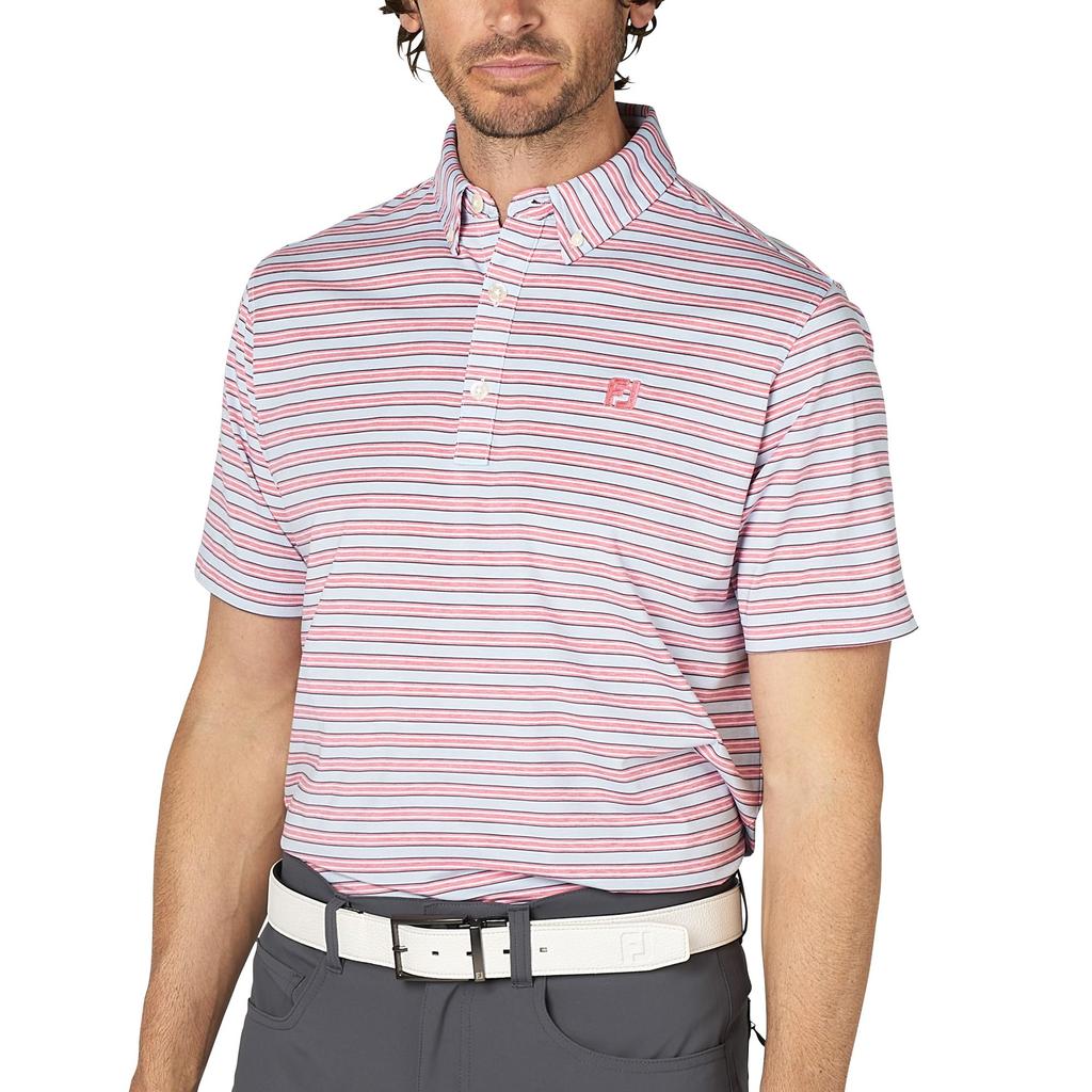 FootJoy Men's Heather Skyway Heather Stripe Short Sleeve Button-Down Golf Shirt, Size L (FJ-S25-S11, 34521-L)