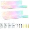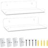 WANLIAN 8 Inch Acrylic Clear Shelves for Wall No Drilling, 2 Pack Small Adhesive Floating Shelf with Ledge, No Damage Mounted, Easily Expand Wall