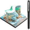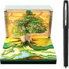 3D Desk Calendar 2025,Time Piece Calendar 2025,Tear-Away 3D Paper Art Notepad w LED Lights,Creative 3D Memo Artsy Pad Calendar, DIY Paper Carving