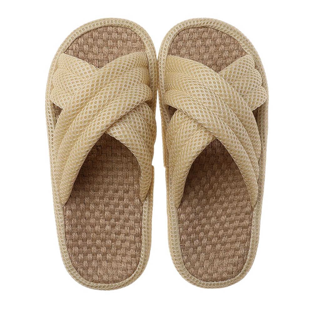 [Euyqs] Mesh Fabric Cross-Strap Slippers, Indoor Use, Quiet, Non-Slip, Unisex (Light Yellow, Adult, Size M, Alphabet, Japanese Shoe Sizes Available)