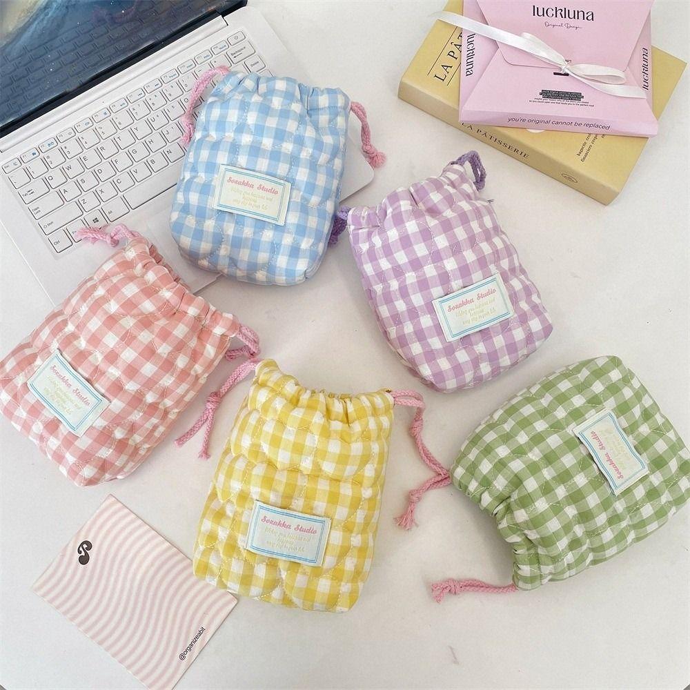 Plaid Drawstring Wallet Anti-fall Makeup Lipstick Storage Bag Camera Storage Bag for Travel