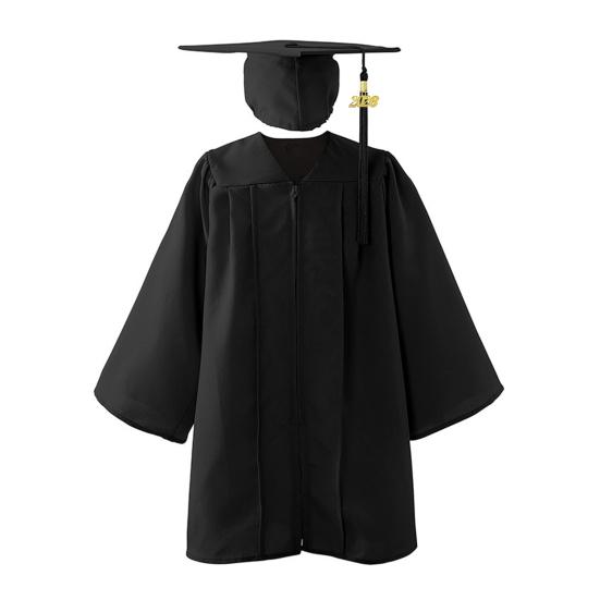 Koordynowany zestaw z frędzlami tworzy jednolity wygląd dla całej klasy. Wykonana z miękkiej, lekkiej tkaniny, suknia zapewnia komfort i swobodę ruchów.. Jego klasyczny design z schludnymi szwami zapewnia trwałość, czyniąc go pamiątką lub rzeczą przekazywaną z pokolenia na pokolenie.. Łatwe instrukcje pielęgnacji sprawiają, że jest wygodny dla zapracowanych rodziców, można prać w pralce i łatwo utrzymać w czystości poprzez szybkie prasowanie parowe lub prasowanie na niskiej temperaturze przed ceremonią.. Czyść punktowo czapkę, aby zachować jej kształt. Świętuj osiągnięcie Twojego dziecka tym zestawem szaty absolwenta przedszkola!