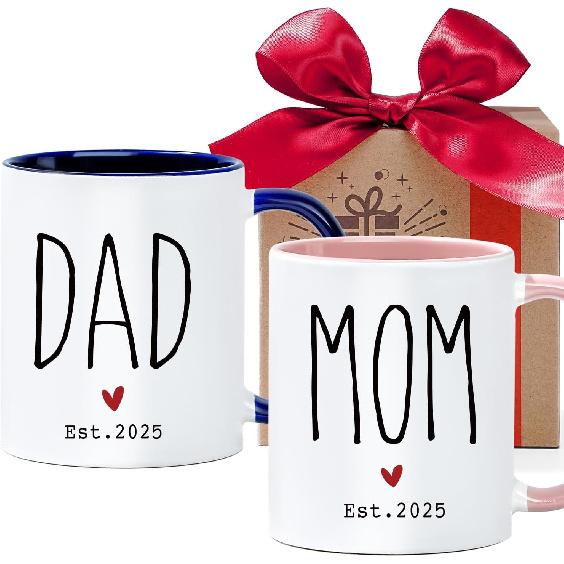 New Dad & Mom Est 2025 Coffee Mugs, First Time Mom Gift Set of 2, First Time Dad Gift, Baby Reveal Mug, New Parents Gift, Prospective Parents Mugs