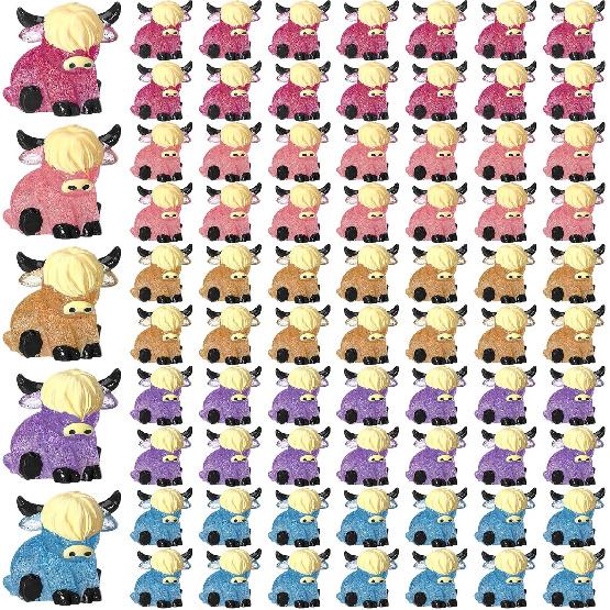 75 Pcs Mini Highland Cow Figurines Bulk Glitter Highland Cow Statues Mini Resin Animals Cute Tiny Resin Figures Animals Sculpture Ornament for Cake