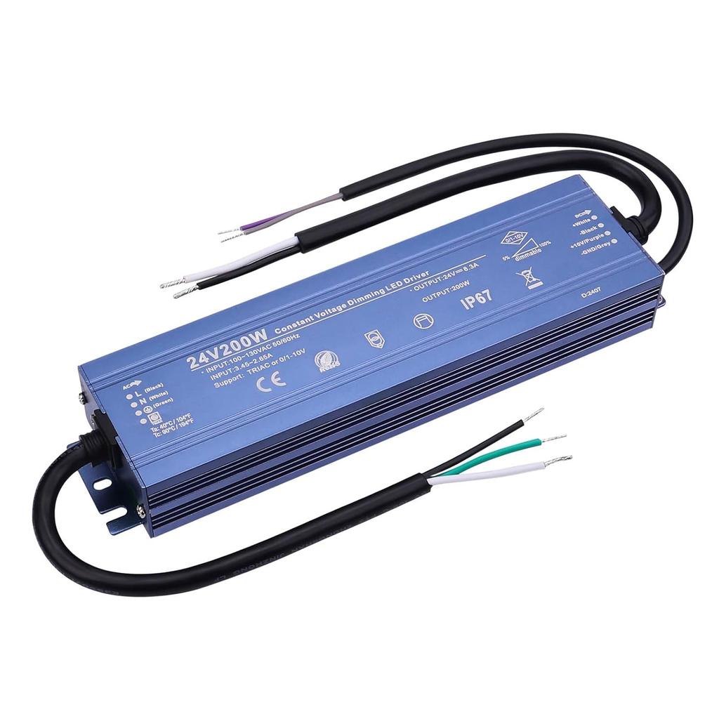 Constant Voltage 24V 200W 8,5A Dimmable LED Driver, Waterproof IP67 Transformer, AC 110V Triac Power Supply, LED Adapter for LED Light, Computer