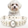 KUDES Small Dog Cat Big Pearl Collars with Crystal Rhinestone Diamond Décor, Adjustable Cute Fashion Pet PU Leather Collars Necklace for Wedding