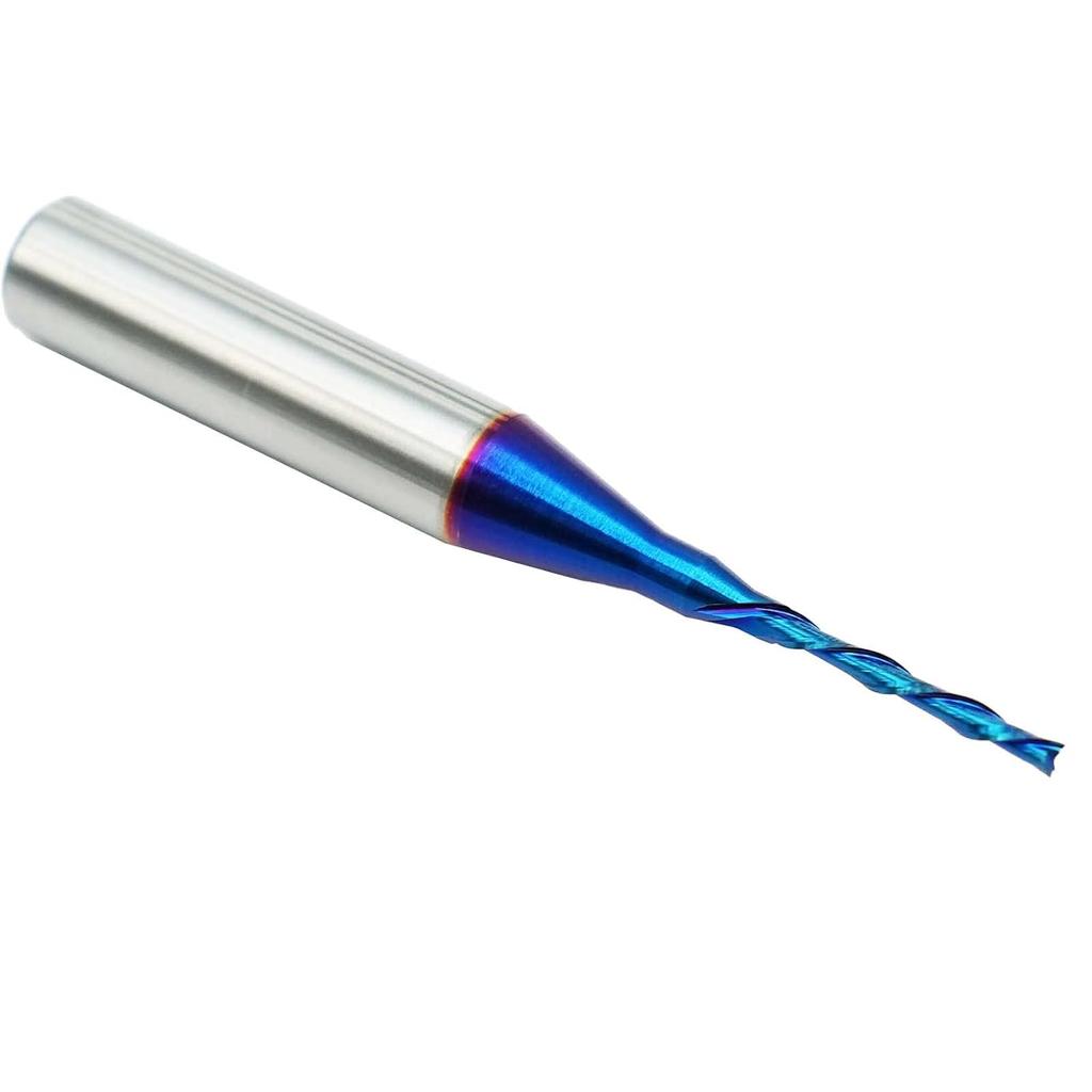 CNC Router Bit Down Cut 1/16 inch Cutting Dia 1/4 inch Shank Solid Carbide End Mill with Nanco Blue Coating CNC Bits for Wood Cut 3D Carving