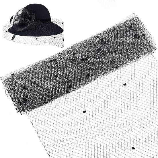 BENECREAT 2.18 Yards Birdcage Veil Netting Fabric, 17.7inch Wide Russian Millinery Netting Organza Tulle Fabric Black Net Mesh Hat Veil for Wedding,