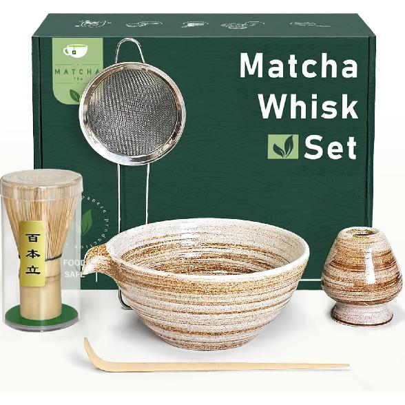 Matcha Whisk Set with Matcha Bowl, Matcha Whisk Holder Matcha Bamboo Whisk, Scoop, Sifter, Unique Gifts for Women Men Girl Friend Home Kitchen Decor