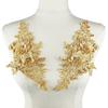 1 Pair Lace Flower Applique Beaded Rhinestones Sew On Embroidered Patches Applique Décor for Wedding Dress DIY Sewing Craft Decoration, Black 9.2 x