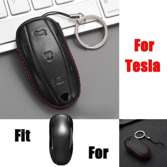 Genuine Leather Car Smart Key Fob Case Cover Keychain For Tesla Model S