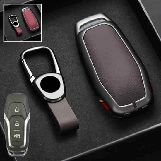 Zinc Alloy Leather Car Key Fob Case Cover For Ford Mustang F-150 Explorer Mondeo