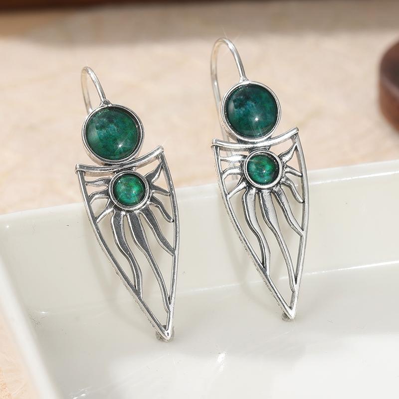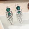 Vintage Design Silver Color Inlaid with Green Stones Women's Earrings Ethnic Metal Geometry Hand Carved Dangle Earrings Woman