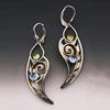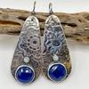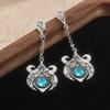 Ethnic Round Inlaid with Blue Stones Earrings Vintage Silver Color Metal Carving Pattern Dangle Earrings for Women Jewelry