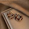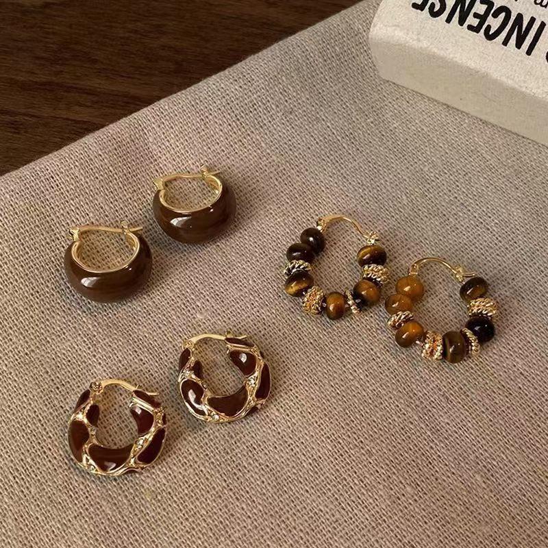 Vintage Brown U-shaped Earrings for Women Girl Simple Coffee Color Round Beaded Hoop Earrings Temperament Wedding Bride Jewelry