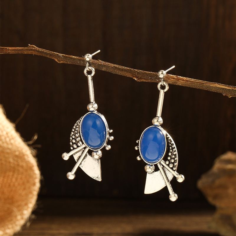 Vintage Bohemian Sapphire Long Pendant Earrings for Women's Vacation Jewelry