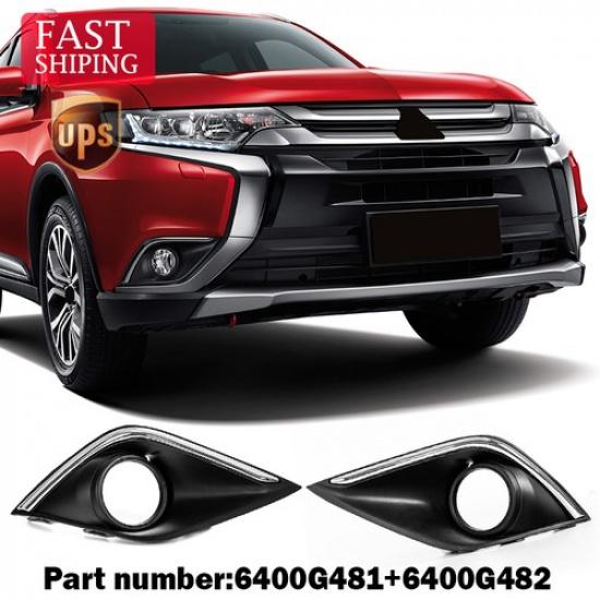 Left+Right Side Fog Light Lamp Cover Bezel Chrome For Mitsubishi Outlander 16-19