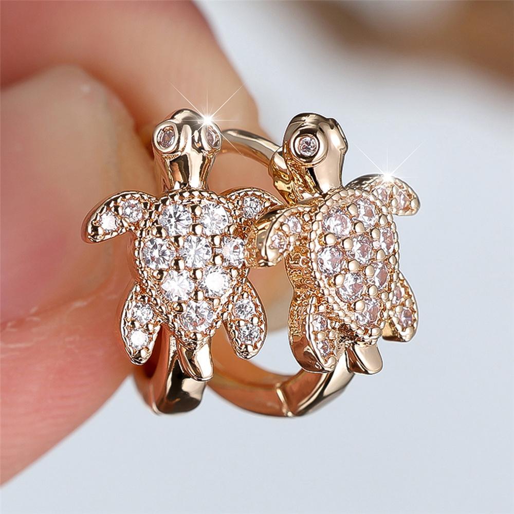 Urocze Damskie Małe Kolczyki Koła z Białą Cyrkonią Kolor Złoty Biżuteria Ślubna Dla Kobiet