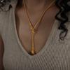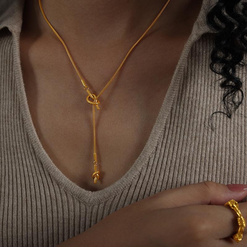 Stainless Steel Knot Pendant Necklace 18k Gold Plated Waterproof Non Tarnish Adjustable Sweater Chain Long Necklace For Women