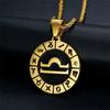 Punk Zodiac Sign Constellations Pendant Gold Color Stainless Steel Rope Chain Round Necklace For Women Men Jewelry Gift