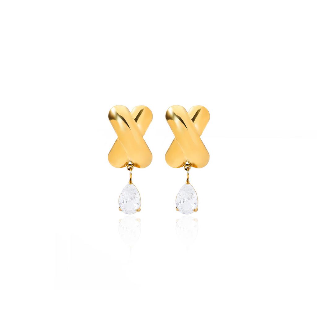 Vintage Zircon Geometric Drop Earrings For Women Gold Color Stainless Steel Earring Wedding Aesthetic Jewelry Gift