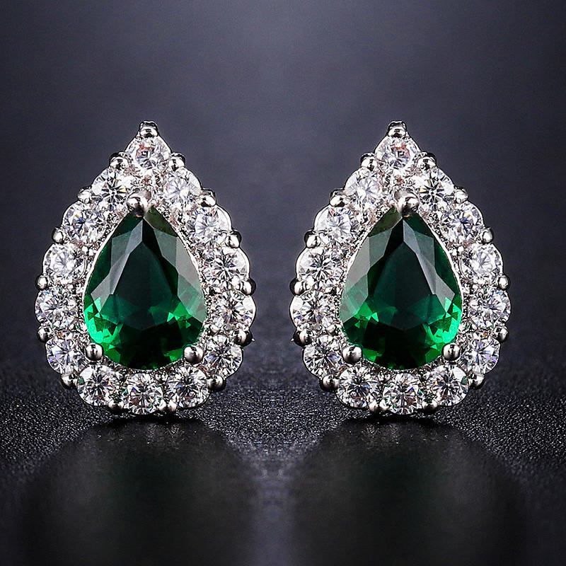 Boho Damskie Kryształowe Zielono-Niebieskie Kamienne Kolczyki Luksusowe Małe Srebrnego Koloru Sztyfty Dla Kobiet Vintage Party Biżuteria Ślubna