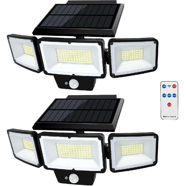 2 Pack Solar Outdoor Lights with Remote Control, Motion Sensor Outdoor Lights with 3 Modes, 3 Heads LED Security Lights, IP65 Waterproof Outdoor