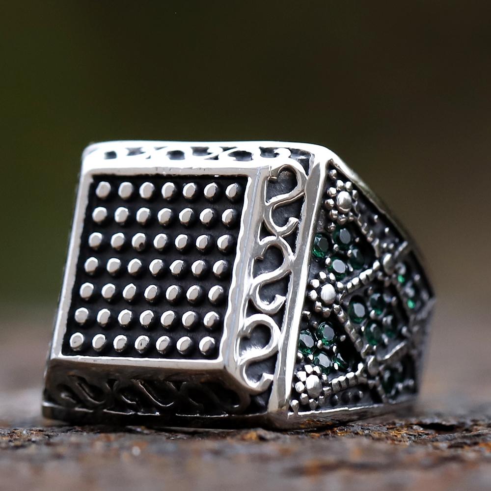 316L Stainless Steel Square Ring With Green Zircon Middle East Anels Danshen Temperament Accessories Couple Gift