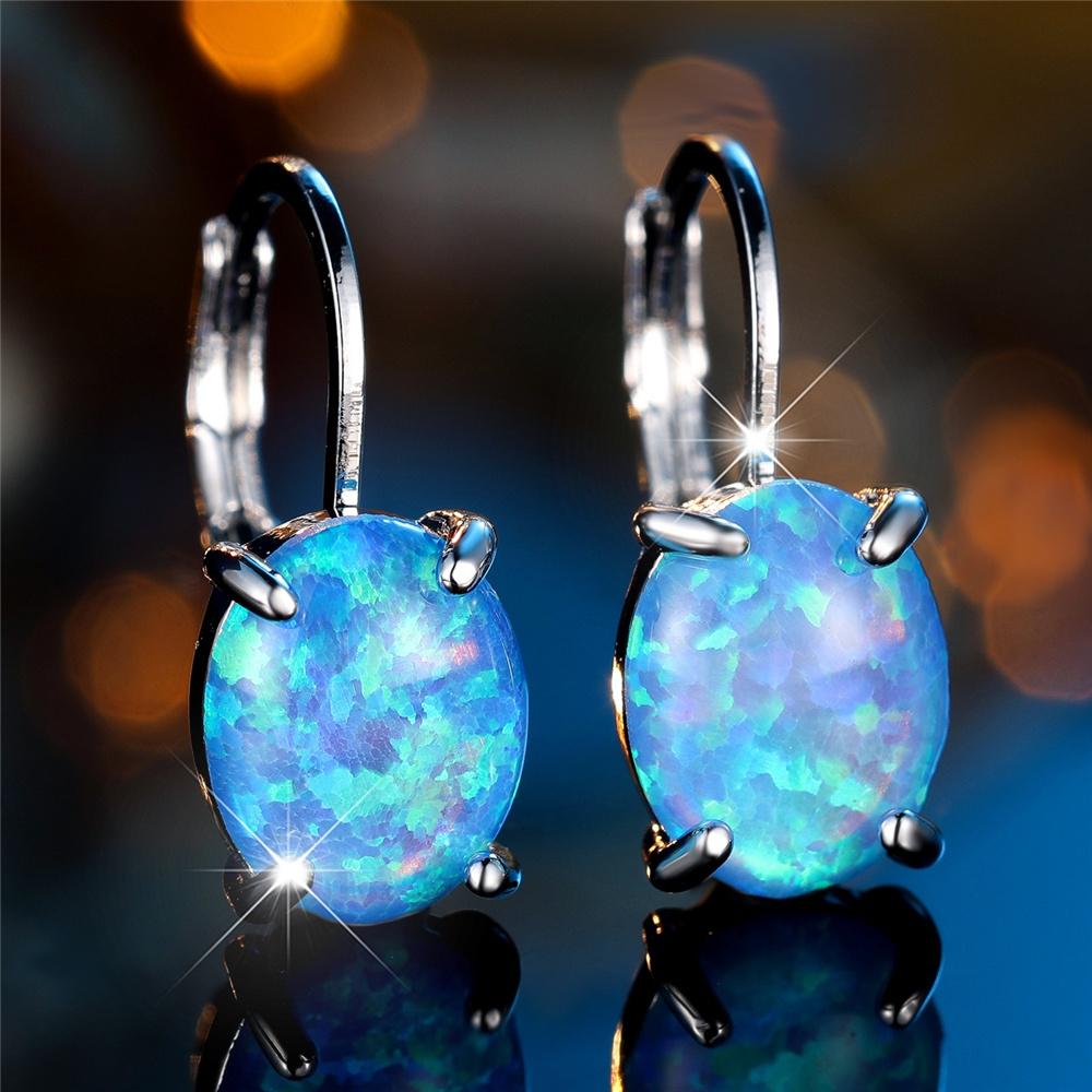 Luksusowe Fioletowo-Niebieskie Białe Opalowe Owalne Kamienie Kolczyki Koła Dla Kobiet Vintage Damskie Srebrny Złoty Kolor Biżuteria Ślubna