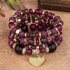 New Acrylic Beads Chain Bracelet Set For Women Tree Of Life Charm Elastic Bangle Female Bohemian Jewelry Accessories