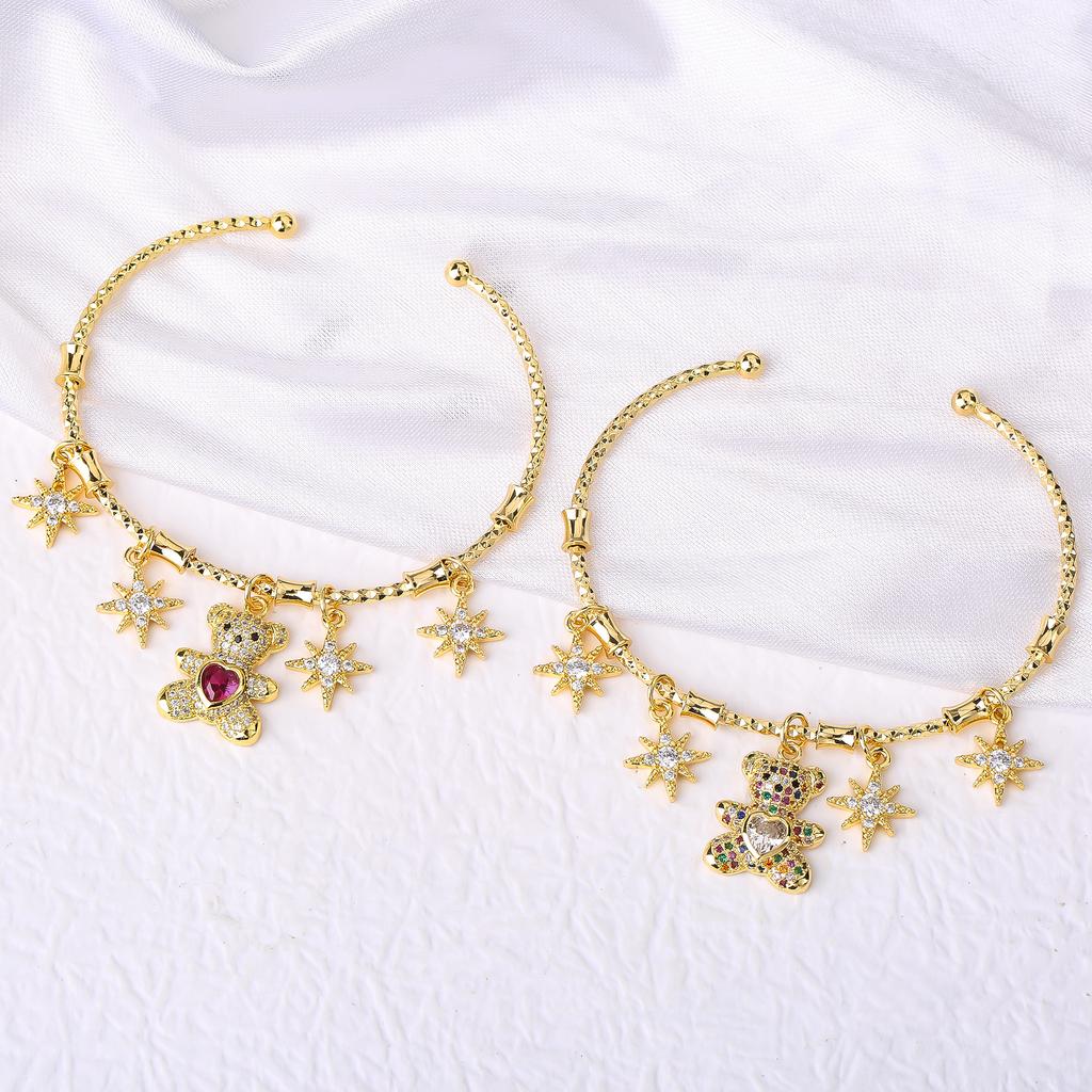 Heart-Shaped Crystal Bear Animal Candy Bracelet for Women Copper Gold Plated Hoops Zircon Bangles Dainty Jewelry Party Gifts