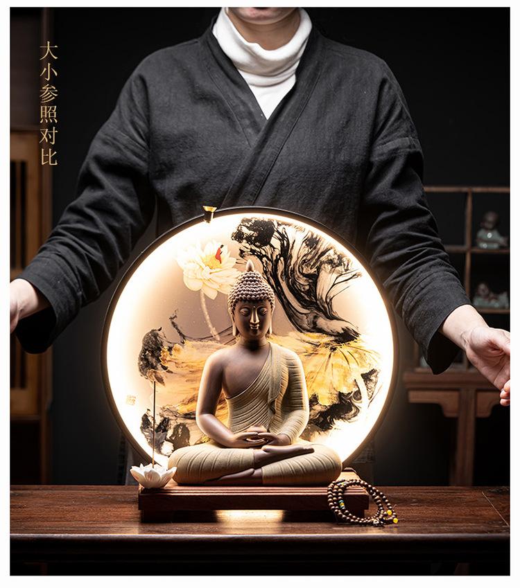 Statua Buddy Budda Tathagata Figurka Budda Siakjamuni Duża Statua Buddy Lampa Ceramiczna Krąg Dostosowana Do Kadzidła Ganek Dekoracja Domu